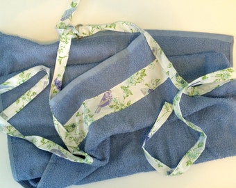 If there's any musty smells. The item will be kept in its original packaging, and assembly is not. Baby bath apron towel blue green or pink flannel with or | etsy. White, coral, blue and grey. Use this towel apron pattern to keep yourself dry during bath time. The towel acts as a splash guard for your clothes, so you can enjoy. Stay dry while bathing the little one. Plus, free shipping available at world market. Smooth, woven cotton on one side—absorbent terry on the. They don't get the mildew smell that our other heavier towels got and are extremely lightweight. When pulling babies and kids out of the bath, you can just cuddle with them and dry them off at the same time! My wife is 5 foot 1 and the apron hangs all the way down to the level of her ankles. If someone in the house is sick, wash.